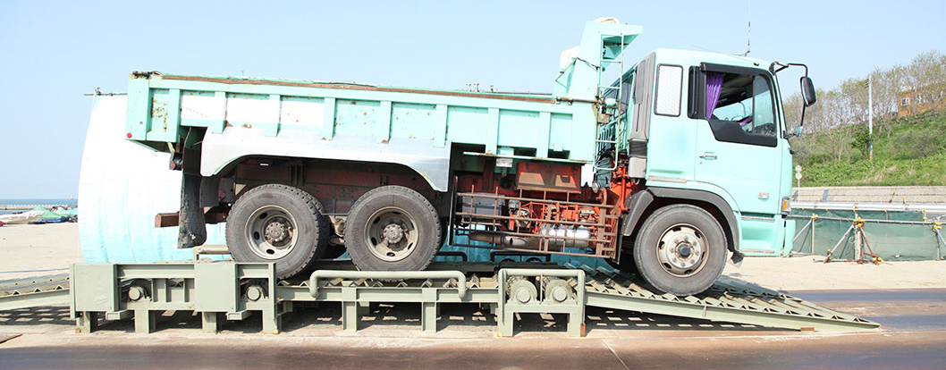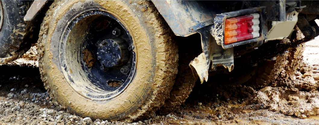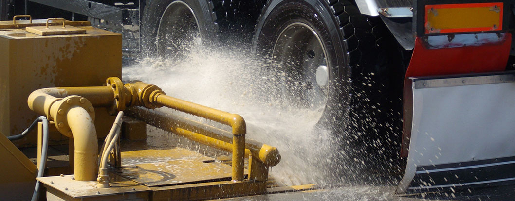 高圧スプレー水洗浄で、頑固な泥も素早くウォッシュアップ! 湿式タイヤ洗浄機