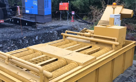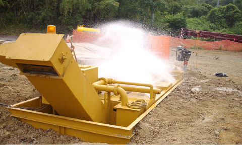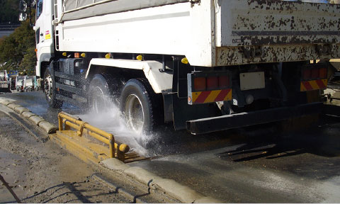 素早くウォッシュアップ。湿式タイヤ洗浄機《Bau-85型》